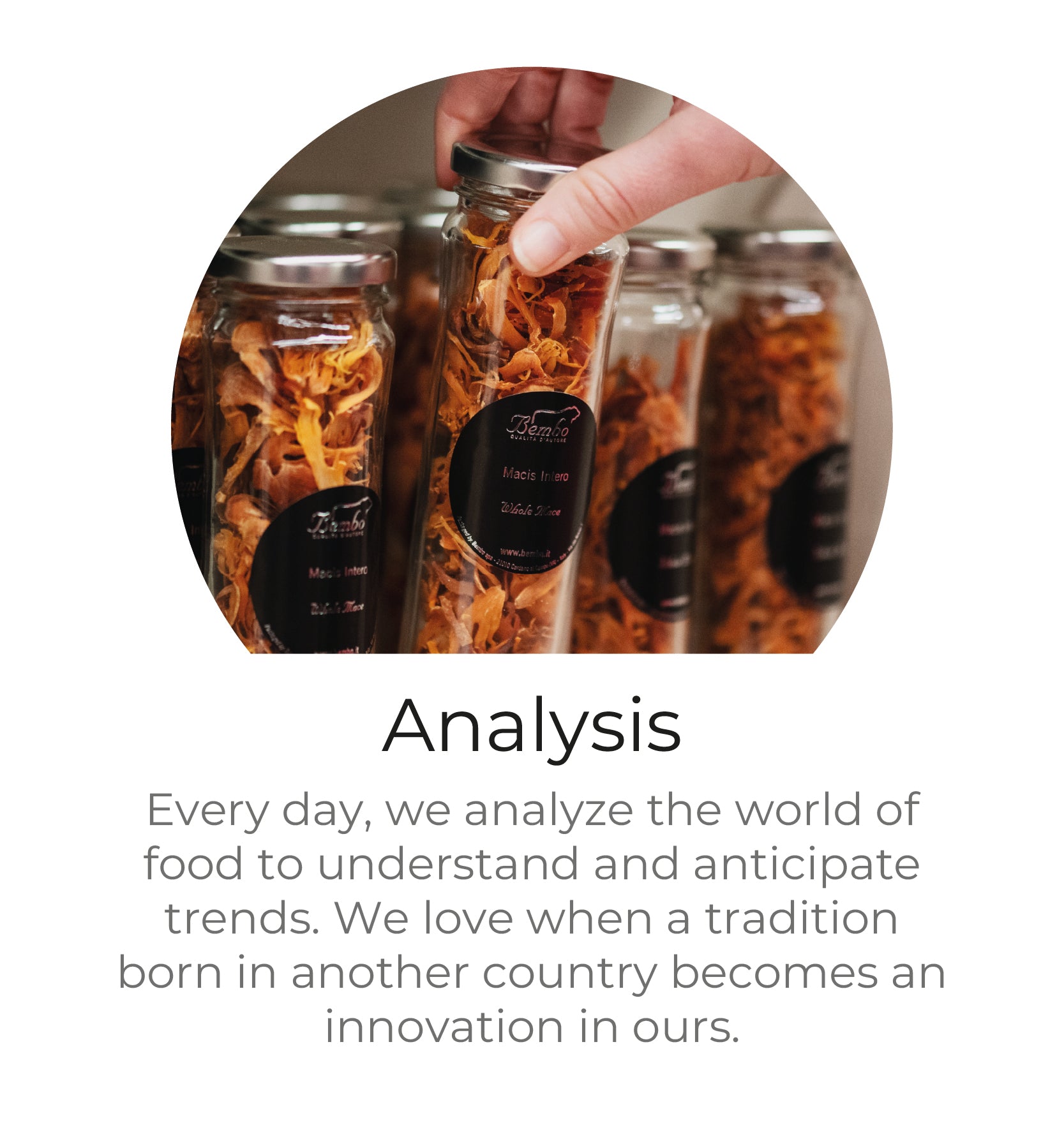 We are great experts in spices, aromatic herbs and botanicals. We search around the world for the best perfumes and aromas.