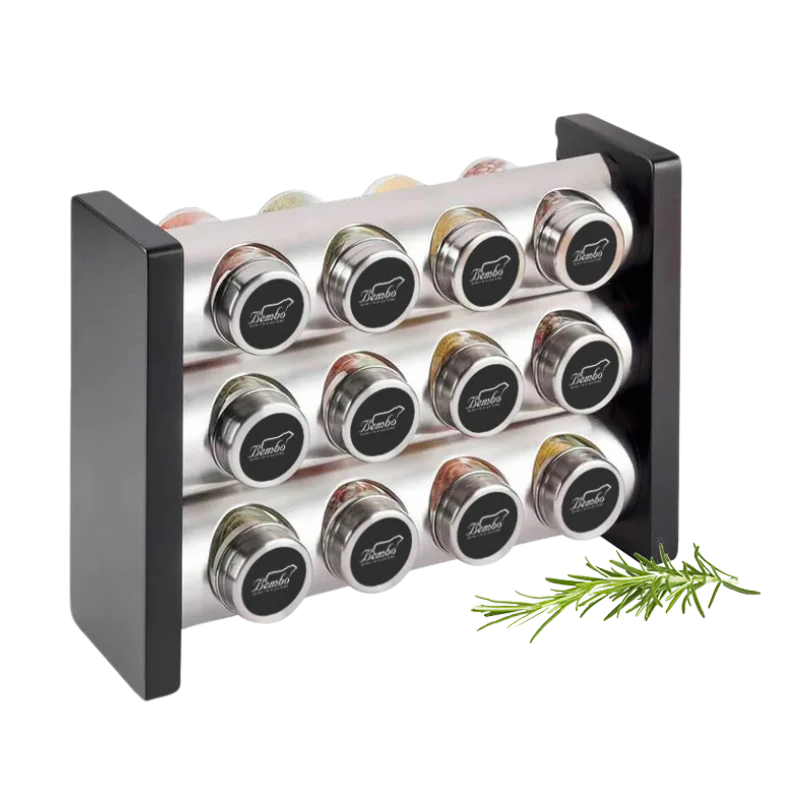 12 récipients aux épices Bembo indispensables pour votre cuisine. Un garde-manger pratique toujours disponible et bien rangé.