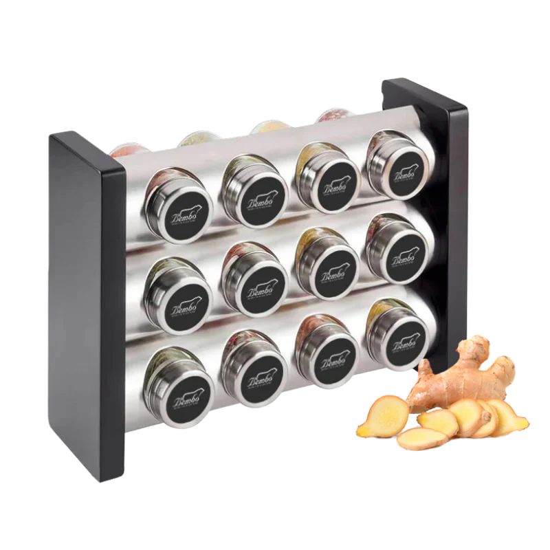 12 récipients aux épices rares Bembo pour votre cuisine exotique. Un garde-manger pratique toujours disponible et bien rangé.