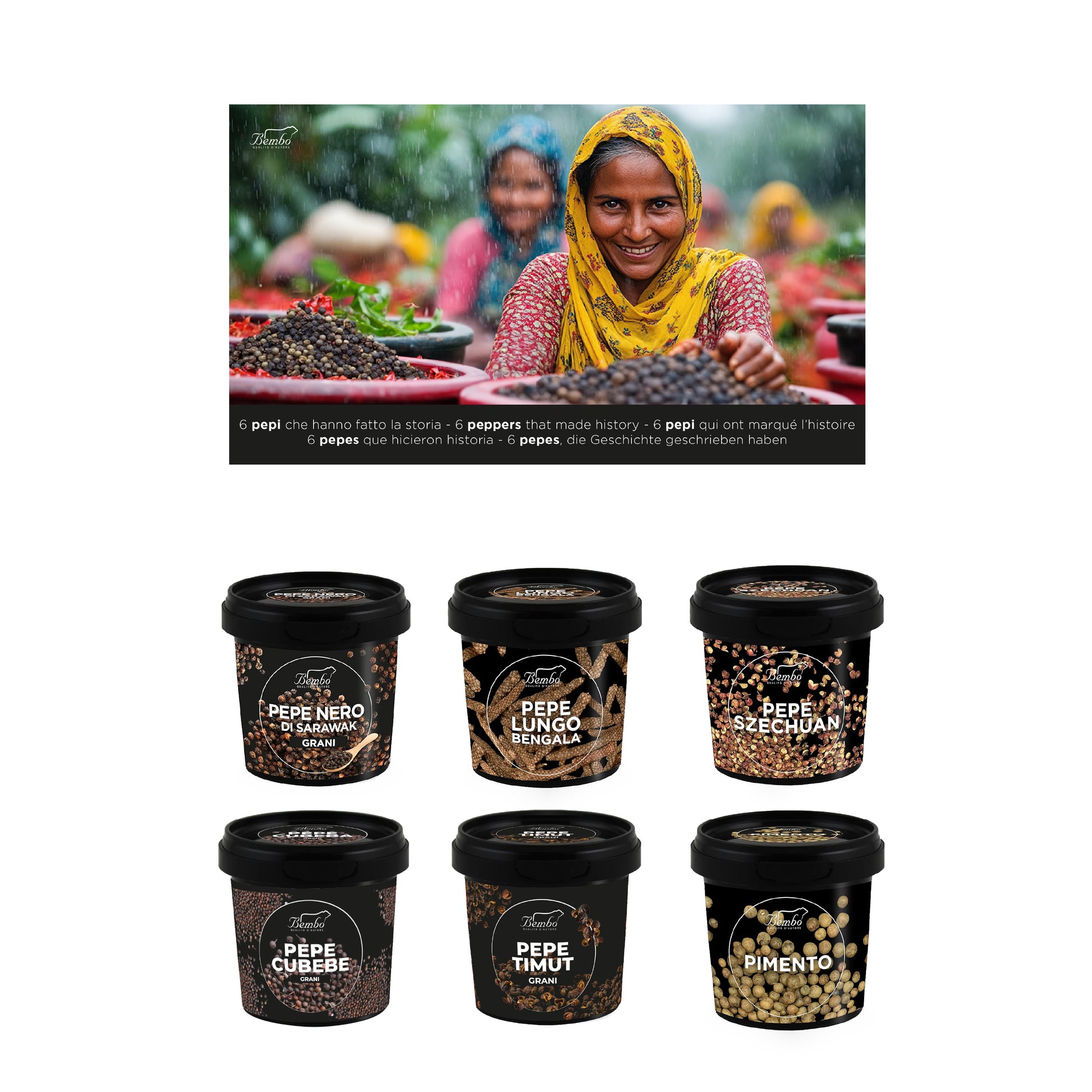 Bembo ti invita in un viaggio sensoriale nel mondo delle spezie con la nostra selezione esclusiva di sei varietà di pepe, ognuna con le proprie caratteristiche uniche e storie affascinanti. Questa confezione di pepi ti invita a esplorare aromi, sapori e tradizioni diverse, offrendo un'esperienza culinaria senza pari. Perfetta per gli amanti della cucina e per chi desidera arricchire le proprie ricette con tocchi esotici e sofisticati.