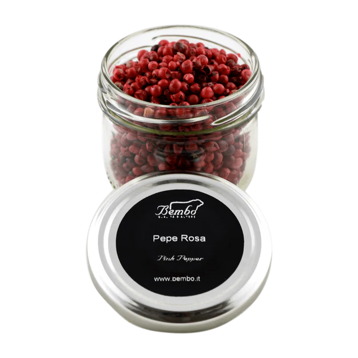 In cucina, i grani di pepe rosa vengono utilizzati per arricchire piatti di carne, pesce e insalate, offrendo un tocco esotico e fresco. È perfetto anche per aromatizzare salse, risotti e piatti a base di verdure, grazie alla sua delicatezza che non sovrasta i sapori principali. Il pepe rosa è anche ideale per la preparazione di dolci, come biscotti e torte, dove la sua dolcezza speziata bilancia il sapore.